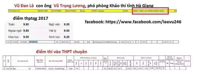 Thông tin lan truyền về điểm thi được cho là của con gái ông Vũ Trọng Lương.