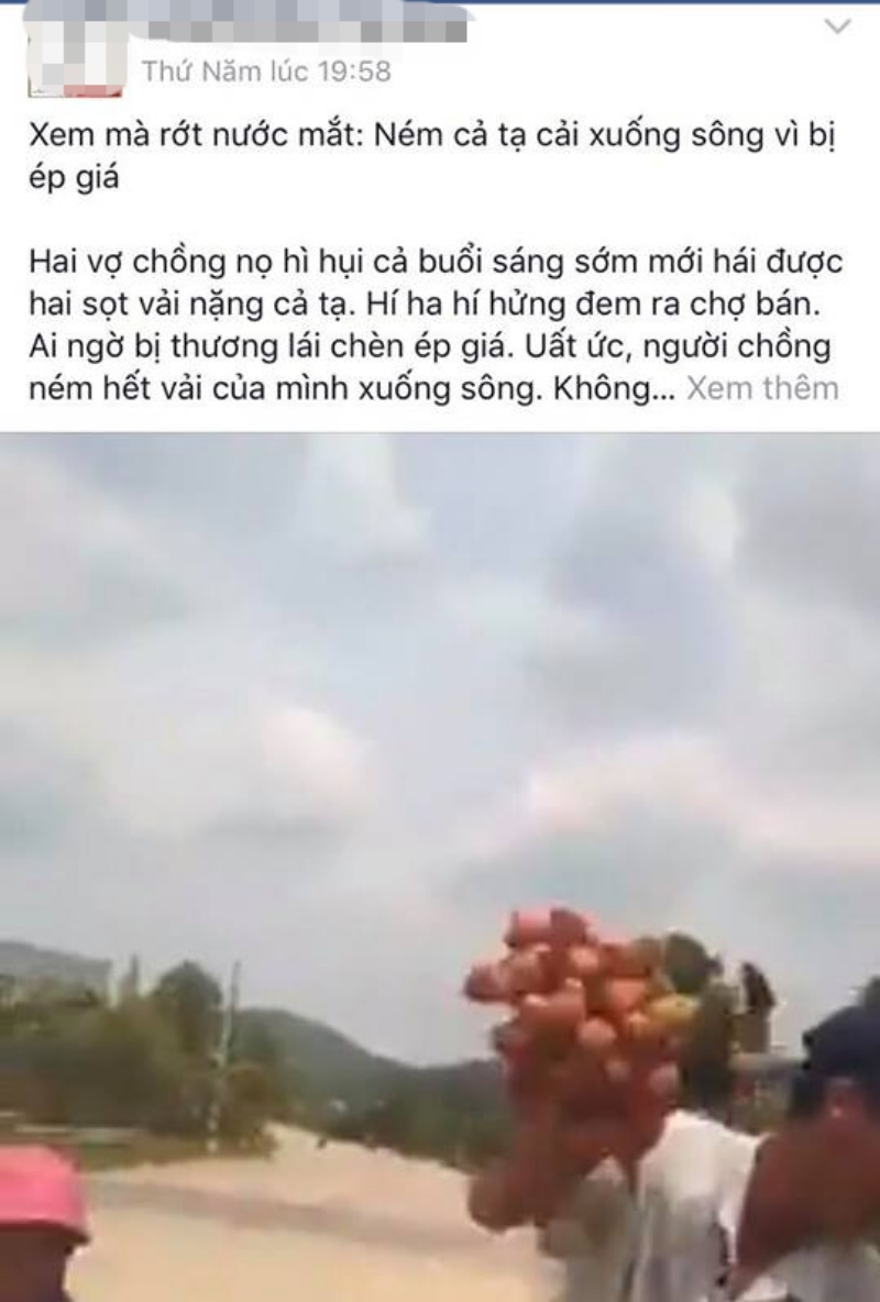 Không những thế trên mạng xã hội còn xuất hiện một đoạn clip ghi lại hình ảnh một người đàn ông chở một xe vải vứt xuống sông vì cho rằng bị ép giá. Ngay sau khi những thông tin trên được đăng tải đã thu hút sự quan tâm của rất nhiều người. Tuy nhiên, theo tìm hiểu của chúng tôi những thông tin trên hoàn toàn thất thiệt.