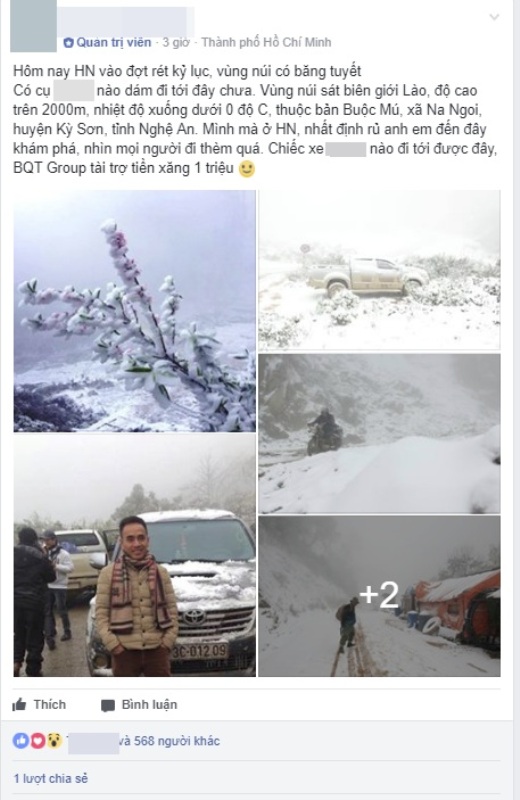 “Vùng núi sát biên giới Việt - Lào, thuộc bản Buộc Mú, xã Na Ngoi, huyện Kỳ Sơn, tỉnh Nghệ An. Với độ cao trên 2000m và nhiệt độ xuống dưới 0 độ, tuyết đã rơi phủ kín mặt đường”, một số nickname lan truyền thông tin trên mạng.