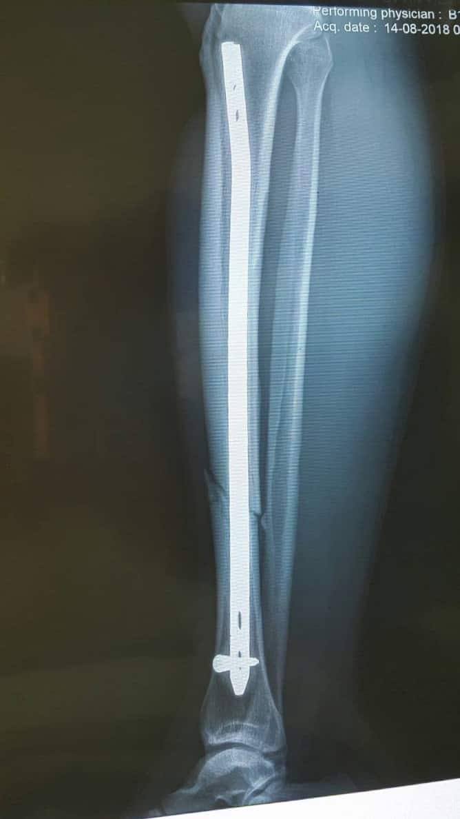 Ngay lập tức các bác sĩ đã tiến hành phẫu thuật đóng đinh nội tủy xương chày phải có chốt dưới màn tăng sáng, không mở vào ổ gãy. Sau phẫu thuật hiện tại tình trạng sức khoẻ của đại uý Tuyền đã dần ổn định.