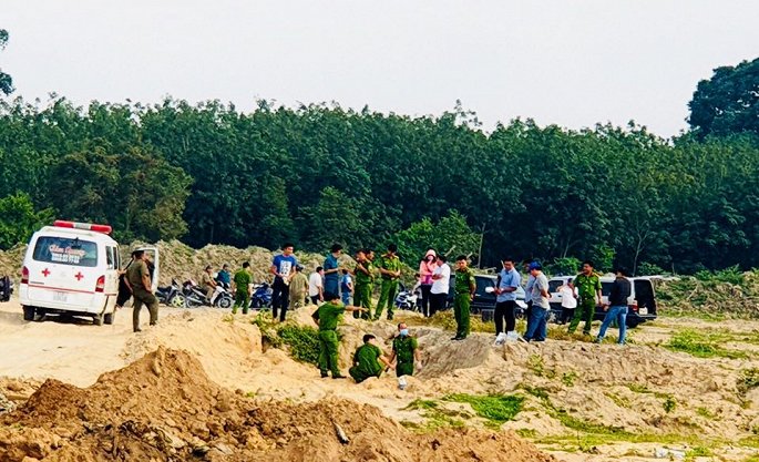 Tại hiện trường, thi thể bị cháy đen nằm dưới một hố sâu tại bãi đất trống thuộc dự án xây dựng khu dân cư, bên cạnh có một chiếc ví bị cháy xém.