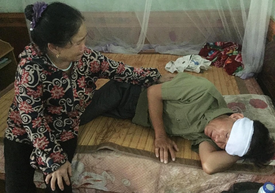 Ông Nguyễn Đình Tuấn (bố cháu Hiền) nằm bệt giường. Ảnh: báo Giao Thông.