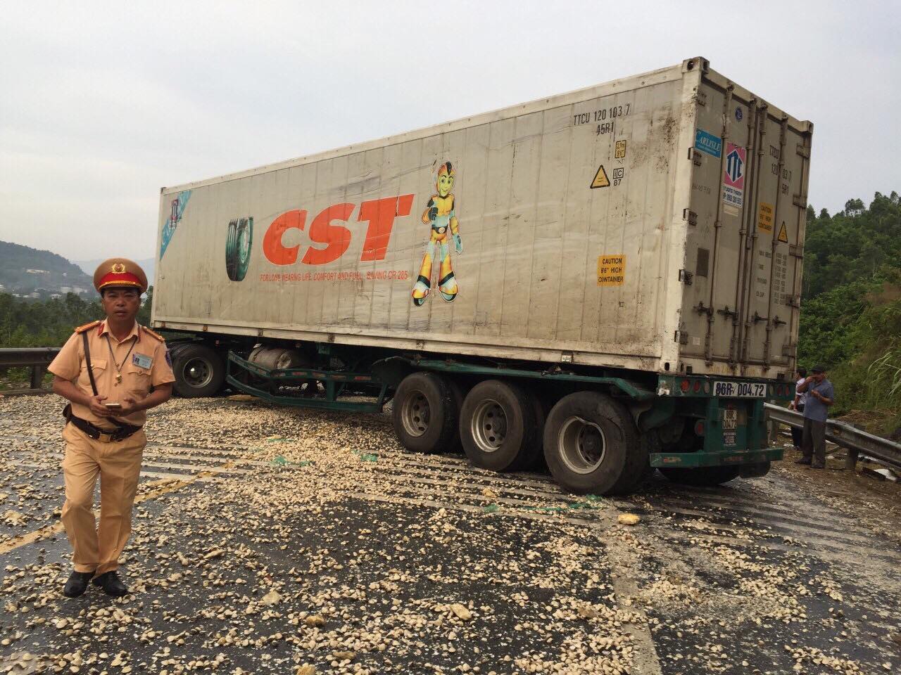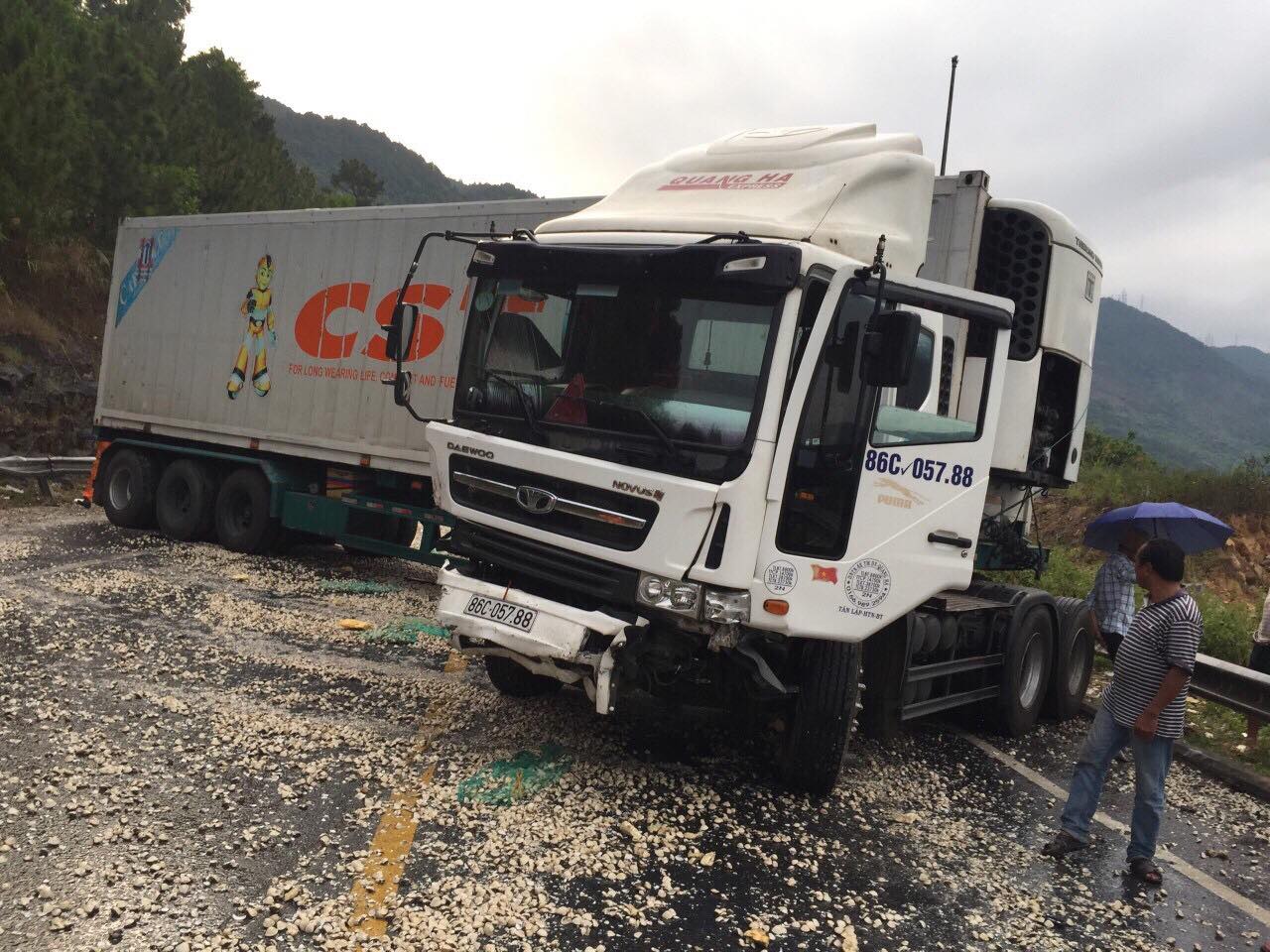 Một trong hai xe đầu kéo đã nằm chắn ngang đường khiến giao thông phía nam hầm Hải Vân ách tắc nghiêm trọng