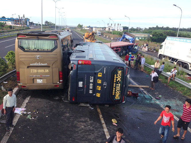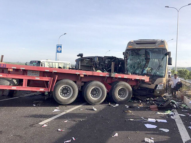 Theo thông tin ban đầu, vào thời gian trên, hai xe khách 52 chỗ đều mang biển số Bình Định và xe container biển số TP.HCM đi từ đoạn cao tốc Dầu Giây đến Long Thành (huyện Long Thành, Đồng Nai) đụng vào nhau.