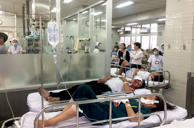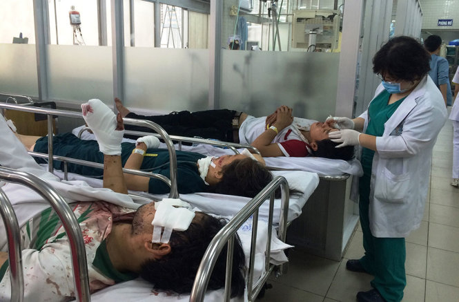 Các nạn nhân bị thương đang điều trị tại Khoa Cấp cứu Bệnh viện Chợ Rẫy - Ảnh: Lê Phan