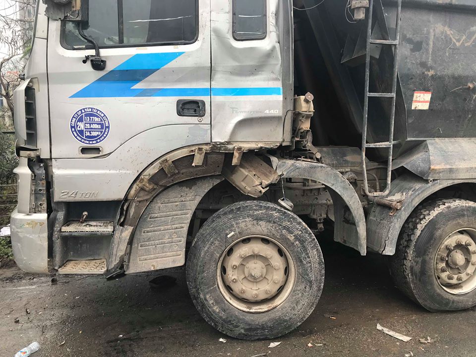 Ngay sau đó, 2 xe tải 24 tấn tiếp tục đâm vào xe container từ phía sau. Tại hiện trường, 4 phương tiện hư hỏng nặng, trong đó container bị nát phần đầu, rất may không có thiệt hại về người.