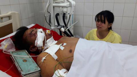 Lái xe tải nằm điều trị tại Bệnh viện. Ảnh: DV
