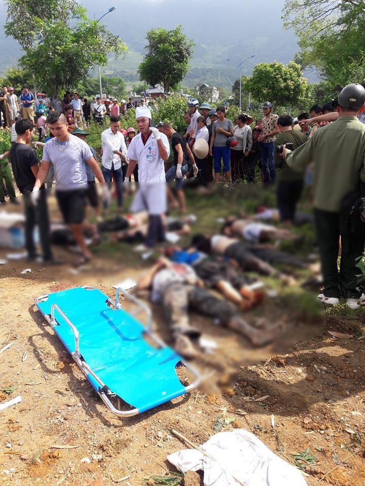 Hình ảnh nạn nhân gặp nạn nằm la liệt.