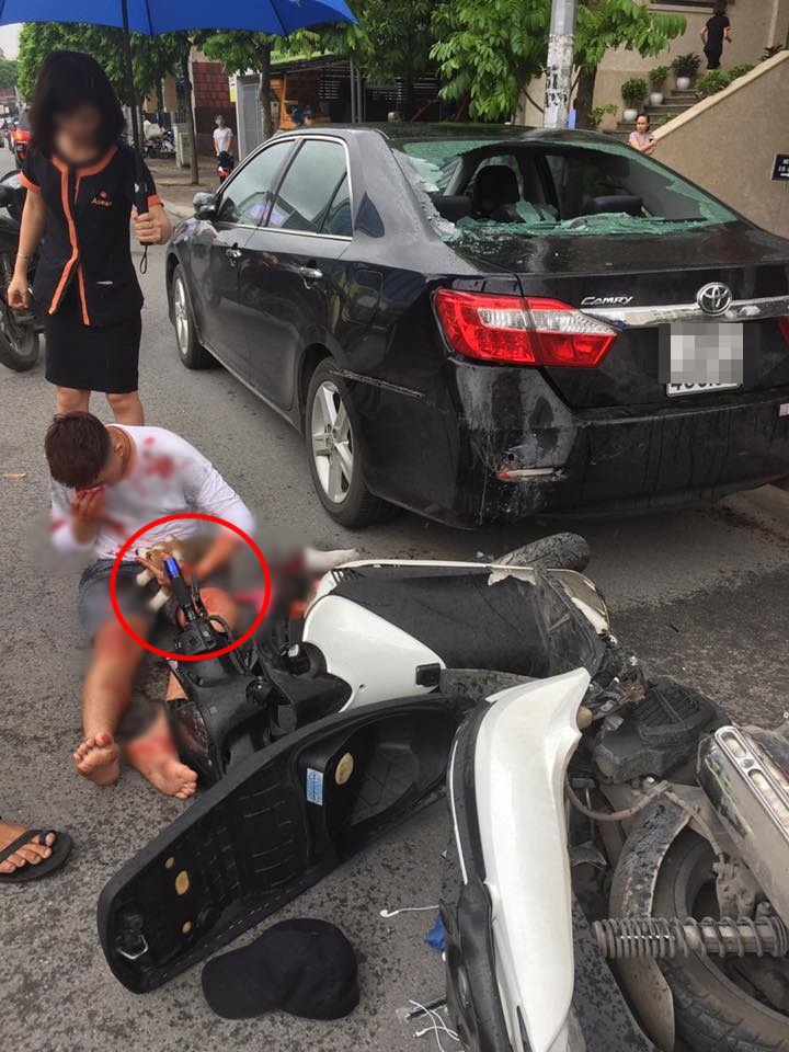 Thế nhưng điều đặc biệt ở đây, mặc cho thương tích, máu bê bết đầy người cùng những hư hao của chiếc xe SH đắt tiền nhưng chàng thanh niên vẫn ôm chặt chú chó vào lòng, tay nhẹ nhàng vuốt ve như trấn an.