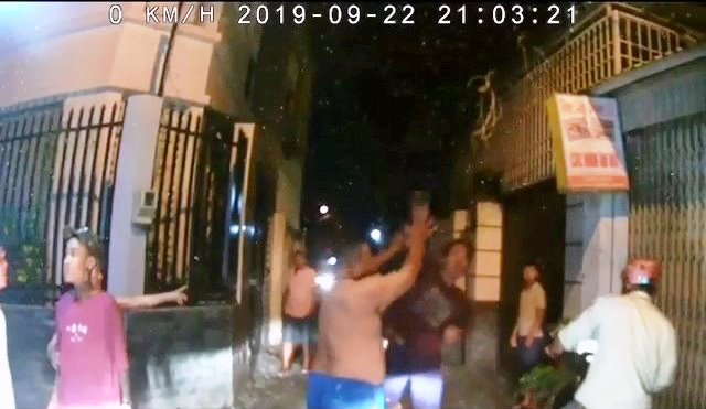 Lúc này, tài xế Grab xuống xe định dắt chiếc xe máy dựng chắn ngang hẻm thì gặp một nhóm thanh niên đang ngồi gần đó. Anh N. nói với nhóm thanh niên: “Anh gì ơi. Cho em dắt chiếc xe máy lùi vào trong một chút nha, chứ xe em không qua lọt. Anh thông cảm giùm nha”.