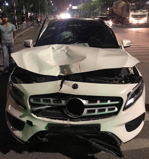 Chiếc xe Mercedes màu trắng gây tai nạn rạng sáng 1-5 - Ảnh: Otofun