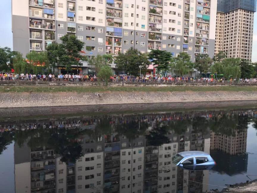 Khoảng 18 giờ chiều ngày 12/6 một chiếc ô tô loại 4 chỗ màu xanh được đỗ trên vỉa hè đường Kim Giang, phường Đại Kim, quận Hoàng Mai, Hà Nội bất ngờ trôi tuột xuống sông Tô Lịch.