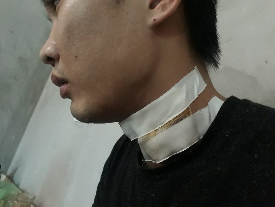 “Vết thương ở cổ khá nặng, khâu nhiều mũi khiến việc ăn uống, nói chuyện của tôi trở nên rất khó khăn. Ngoài ra tôi cũng bị thương ở tay và chân nên không đi lại được”, anh T. nói.