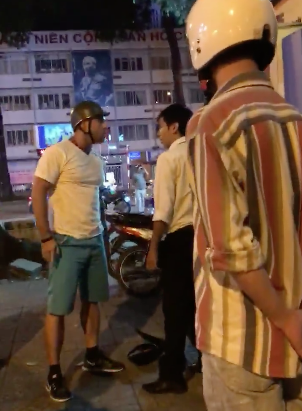 Người lái taxi đã yêu cầu gọi công an tới giải quyết, tuy nhiên đối phương người nước ngoài lại không chấp nhận nói chuyện ôn hoà, anh ta không ngừng la hét vào mặt người lái taxi khi có rất nhiều người đứng xung quanh. Sau đó, người này lên xe cùng một người phụ nữ được cho là vợ (người Việt) và một em bé định bỏ đi. Ngay lúc này, tài xế taxi lập tức lao ra, nắm lấy đuôi xe để yêu cầu anh ta ở lại tiếp tục giải quyết. Bất ngờ, người đàn ông này xuống xe, lao đến đánh người lái taxi khiến anh hốt hoảng bỏ chạy.
