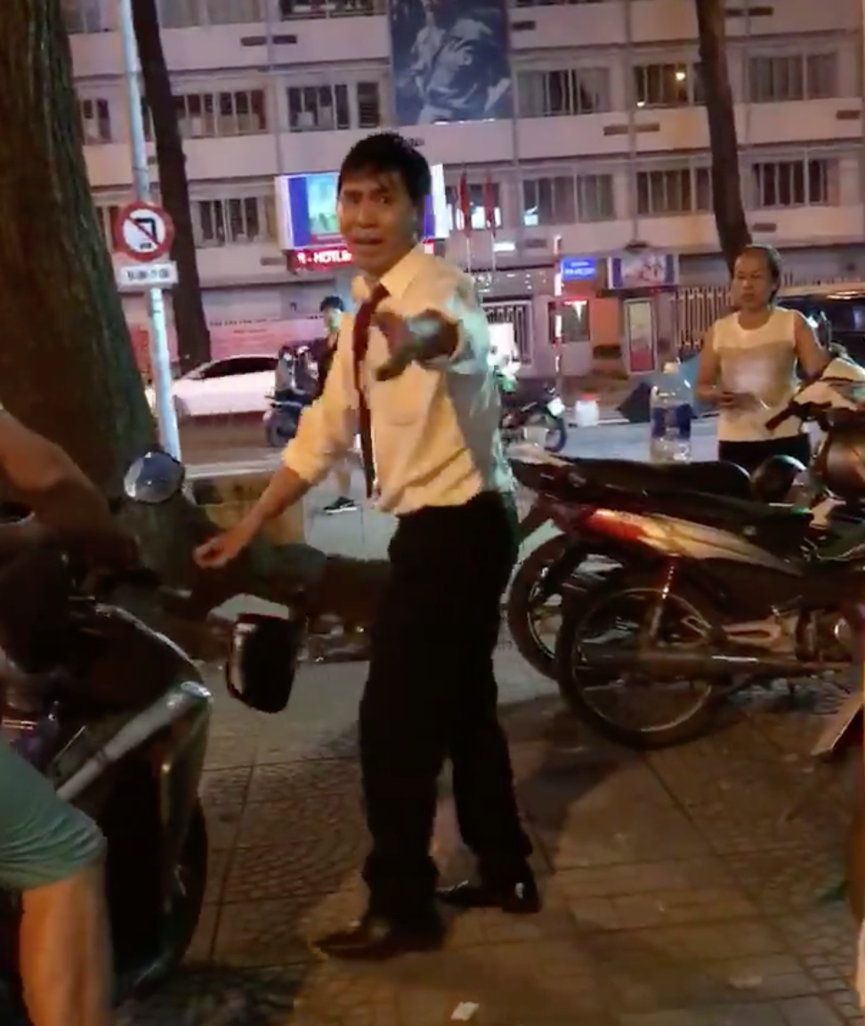 Theo diễn biến trong clip, người đàn ông tây phương này dường như rất hung hăng, không ngừng chửi bới lớn tiếng khi bị anh lái chặn lại. Khi người lái taxi kể lại sự việc, anh cho biết: “Chạy ở ngoài kia, xe chạy rất là nhiều, ổng băng qua đường, em chạy có nhanh đâu, em rước khách xong quẹo ra có xi nhan đàng hoàng cái ổng đi ngang ổng đập kiếng người ta.”