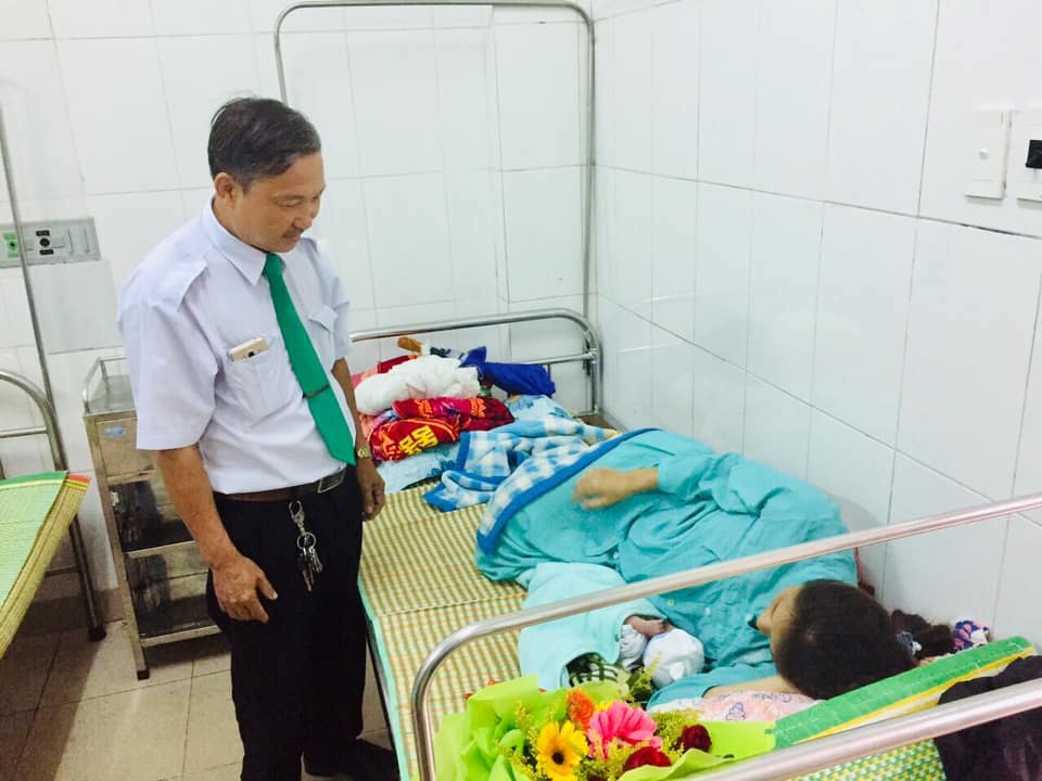 Tài xế Hà vào viện thăm lại mẹ con sản phụ đã được mình đỡ đẻ thành công. Ảnh: Đất Lúa
