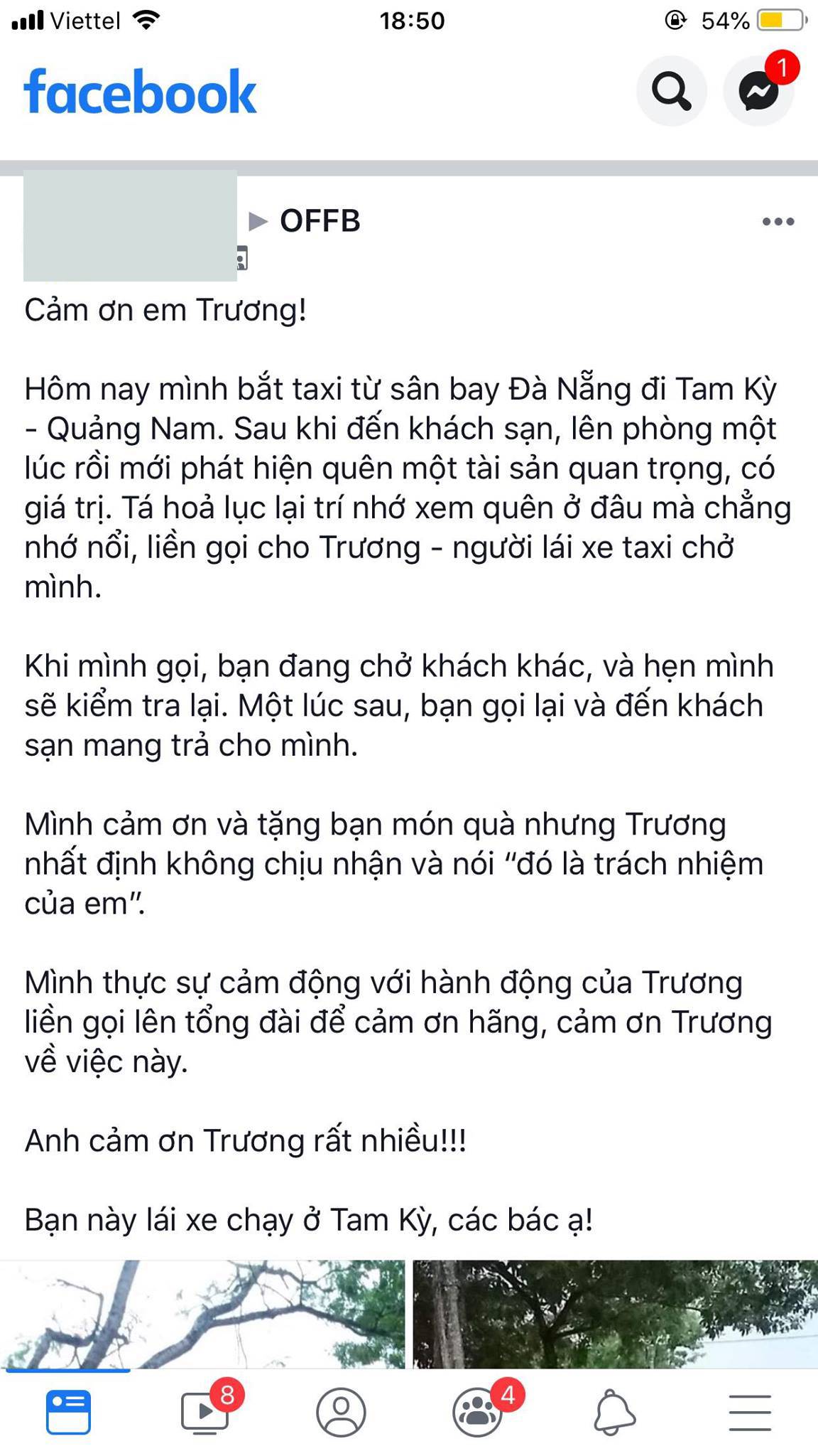 Mới đây, tài khoản có tên Võ Thanh Tùng (Hà Nội) vừa chia sẻ câu chuyện của chính mình khi nhận được lòng tốt của 1 tài xế taxi. Anh Tùng cho biết ngày 8/8, anh đi công tác ở Quảng Nam. Sau khi xuống sân bay Đà Nẵng, anh đón taxi để về khách sạn ở TP Tam Kỳ. Đến khách sạn, lên phòng một lúc anh mới phát hiện mất một món đồ. Món đồ ấy là quà của bà xã tặng, cũng là tài sản có giá trị và rất quan trọng với anh.