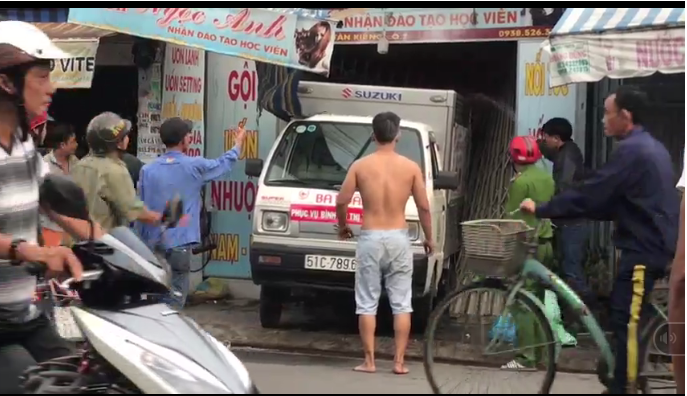 Mọi người cố gắng phá cánh cửa chính ngôi nhà để cứu người mắc kẹt bên trong. Do lửa cháy quá lớn, không còn cách nào để vào trong cứu người. Lúc này, một tài xế xe tải đã dũng cảm dùng phương tiện của mình tông vào để làm sập cánh cửa chính của căn nhà.