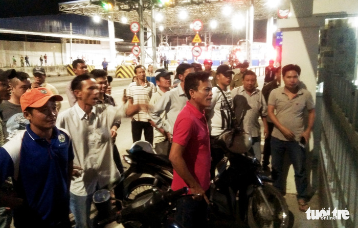 Tuy nhiên, đến khoảng 22h45 các tài xế lại tiếp tục đòi qua trạm mà không mua vé với lý do chỉ đi khoảng vài trăm mét QL91.