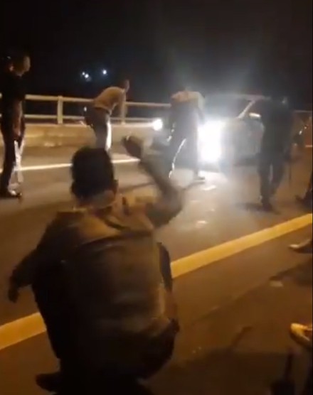 Hình ảnh nhóm thanh niên chặn xe ô tô gây phẫn nộ.