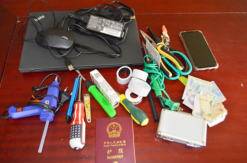 Qua kiểm tra khách sạn mà nhóm đối tượng lưu trú, công an phát hiện có 3 bộ thiết bị điện tử gắn camera mini và phần mềm thu thập dữ liệu, 3 khe cắm thẻ ATM có gắn phần mềm thu thập dữ liệu, 333 thẻ ngân hàng giả, 2 máy tích xách tay. Công an xác định nhóm này đã dùng 22 thẻ giả để rút gần 300 triệu đồng của các khách hàng.