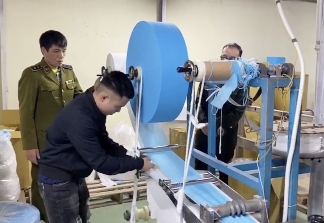 Bước đầu khai nhận với cơ quan chức năng, người đàn ông tên Nguyễn Văn Long (thợ kỹ thuật của Công ty TNHH Việt Hàn) cho biết, trước đó đã mua một cuộn giấy vệ sinh với trọng lượng 40kg từ Bắc Ninh đem về cơ sở ở xã Minh Cường. Số giấy này được đưa vào máy để sản xuất thành khẩu trang 4 lớp thay cho lớp vải kháng khuẩn.