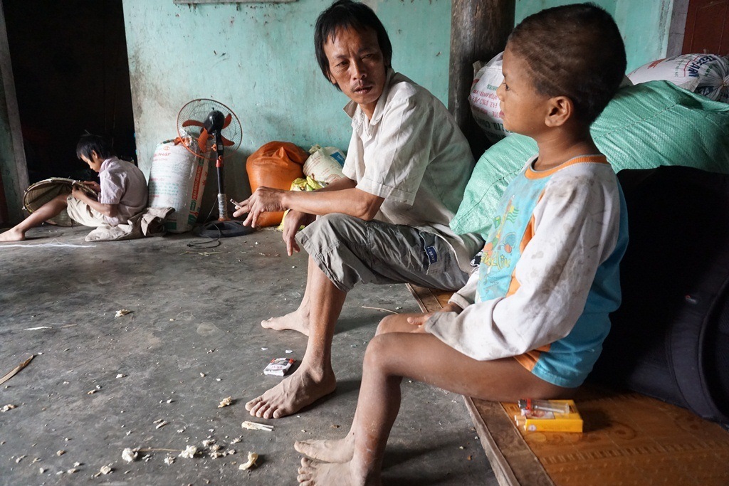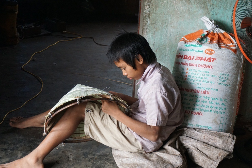 Còn con trai thứ 3 thì chỉ biết lầm lũi đan nón.