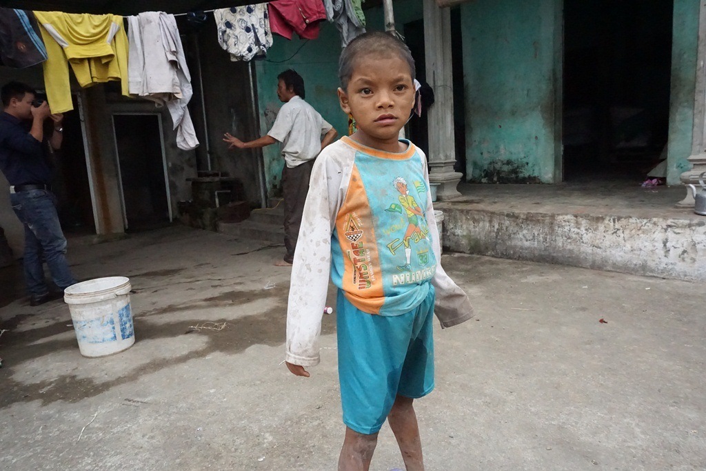 Chỉ vào đứa cháu đang đứng, người đen nhẻm, bà Xúi cho biết, không được bố mẹ đặt tên nên gọi là Tư. Em bị câm điếc, không tự chủ được hành động của mình.