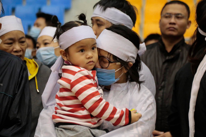 Có những người vốn chẳng hề quen biết ai trong số 22 quân nhân hi sinh nhưng họ vẫn tới, muốn dâng một nén hương bày tỏ lòng thành kính với người đã khuất, muốn được san sẻ mất mát đau thương này với nhân thân của các liệt sĩ. Những người tới viếng thăm nhận khẩu trang ở lối vào nhà thi đấu rồi lặng lẽ tiến vào bên trong.