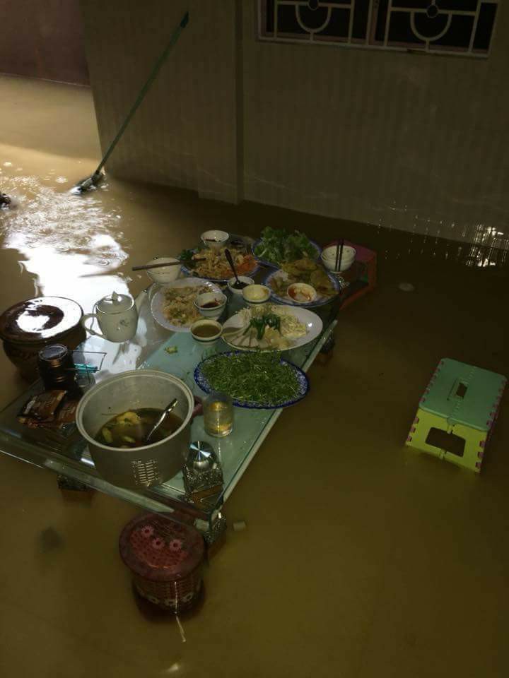 …Và chỉ trong thời gian ngắn, cả căn nhà ngập trong nước lũ. Một mâm cơm, hai số phận!