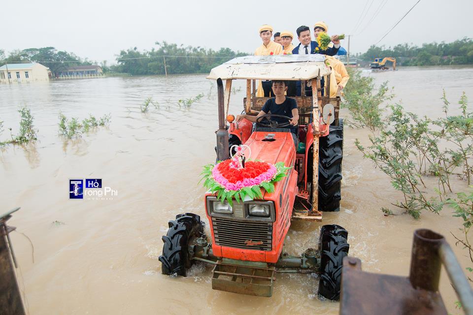 Đám cưới rước dâu bằng… máy bừa ở Quy Nhơn (Bình Định).