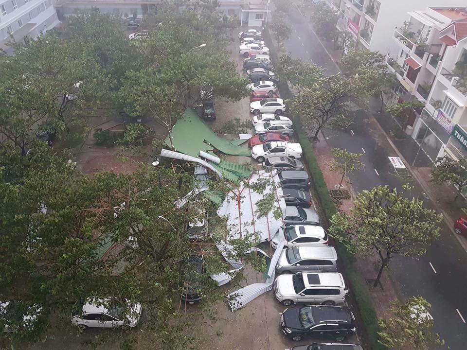 Khung cảnh tan hoang ở bãi đỗ ô tô ở Nha Trang. ảnh: BEATVN.