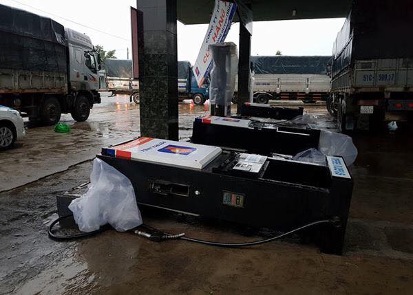 Cây xăng bị gió quật đổ. Nguồn ảnh: Fanpage Khánh Hoà 24h.
