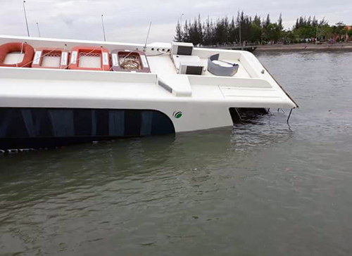 Tàu cao tốc C3 chìm một nửa dưới nước. Ảnh: VNE.