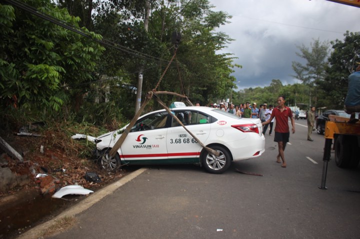 Khi đến địa điểm trên, taxi của Đạt lao sang làn đường ngược chiều tông trực diện vào xe máy mang BKS 92B1-073.26 do bà Trần Thị Vân (SN 1958) chở theo cháu Trần Thị Thúy Thương (SN 2007; ngụ xã Tam Phú).