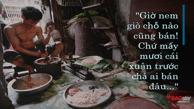 Cái nem, cái giò chả cũng phải đích thân ngồi giã. Ông giã bà gói ấy vậy mà cái không khí nó ấm cúng hẳn… Còn bây giờ thức ăn dư không thiếu, không quản giàu hay nghèo, cây nem, cây chả đâu có khó để mà mua.