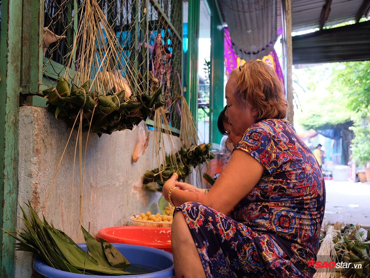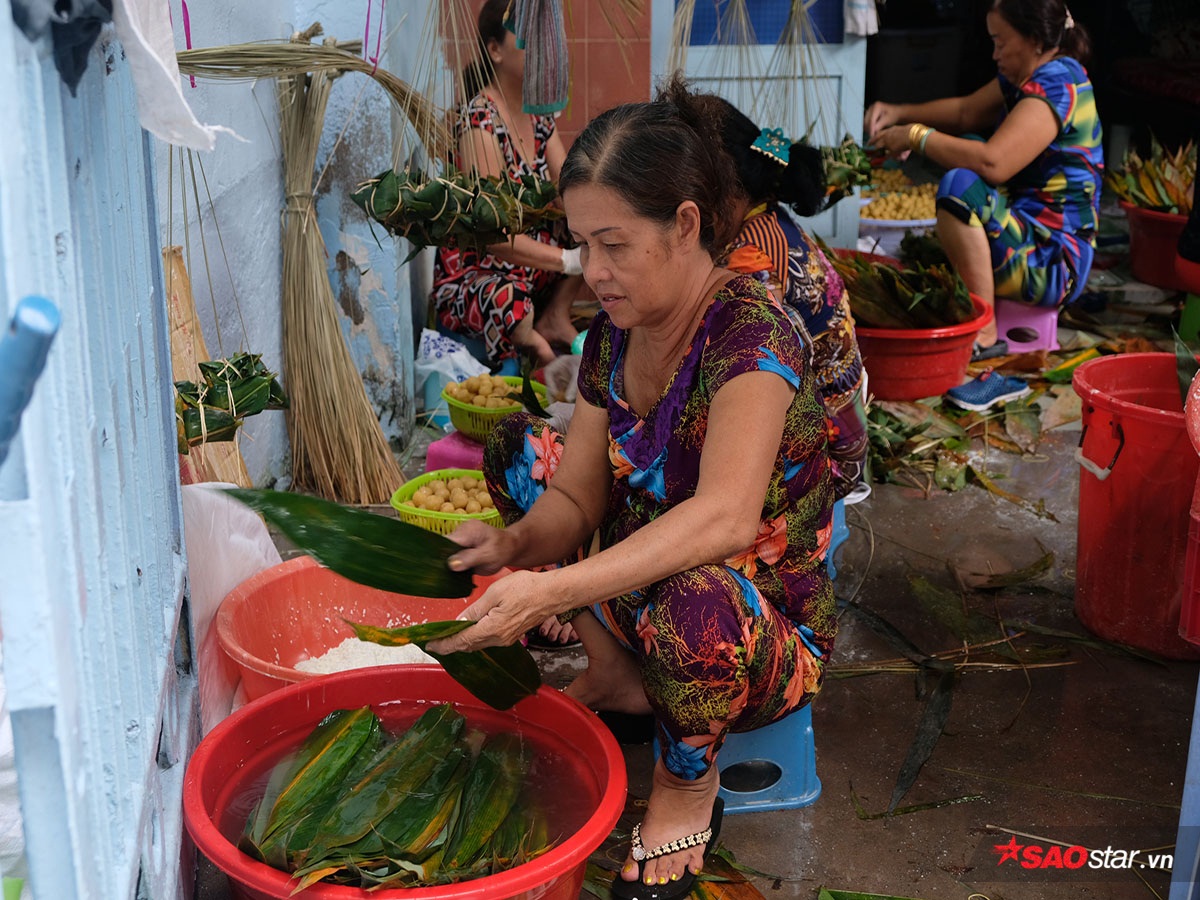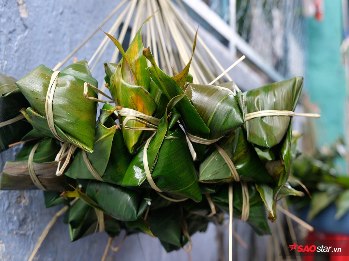 Tay vừa gói dở chiếc bánh, chị Vân (36 tuổi) cho biết rằng cần ngâm nếp sau một đêm, để ráo nước; đậu xanh bóc vỏ được ngâm mềm và mang đi xào (phải nấu đậu thật nhừ thì bánh mới ngon). Chuyển sang công đoạn gói bánh, mỗi chiếc bánh được gói tỉ mỉ và cẩn thận và cột thành từng chùm và mang đi nấu. Sau khi mất khoảng 3,5 tiếng để chín, bánh sẽ được mang đi bán dọc đường, số còn lại được bỏ sỉ ở các chợ lớn, nhỏ.