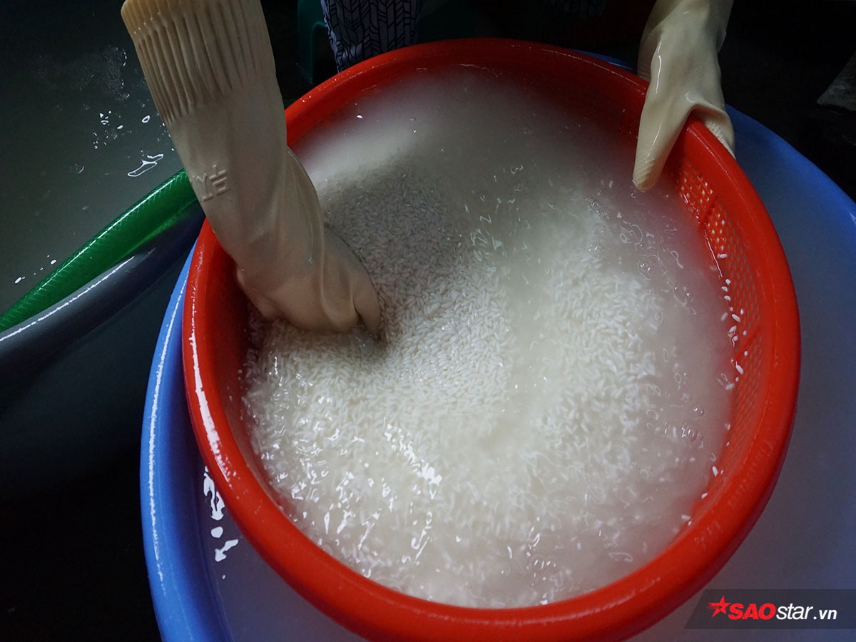 Bánh sau khi chín được vớt ra sau đó cho qua một lượt nước lạnh để nguội bớt