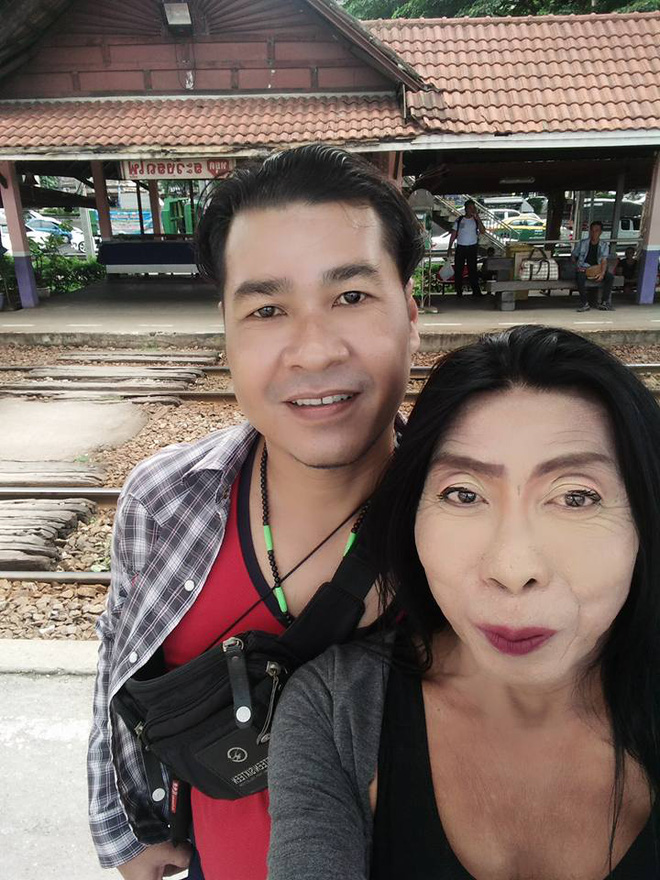 Trái với vẻ phong độ, lịch lãm của chàng trai thì người phụ nữ này lại lộ rõ nhiều dấu hiệu của tuổi tác: thân hình xồ xề, da nhăn nheo thậm chí còn trang điểm lòe loẹt để có thể tự tin sánh bước bên chàng.