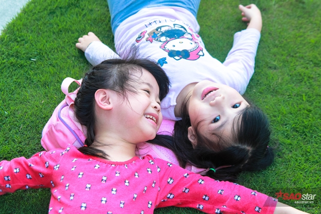 Cùng học, cùng chơi nên hai chị em rất thân thiết và gắn bó.