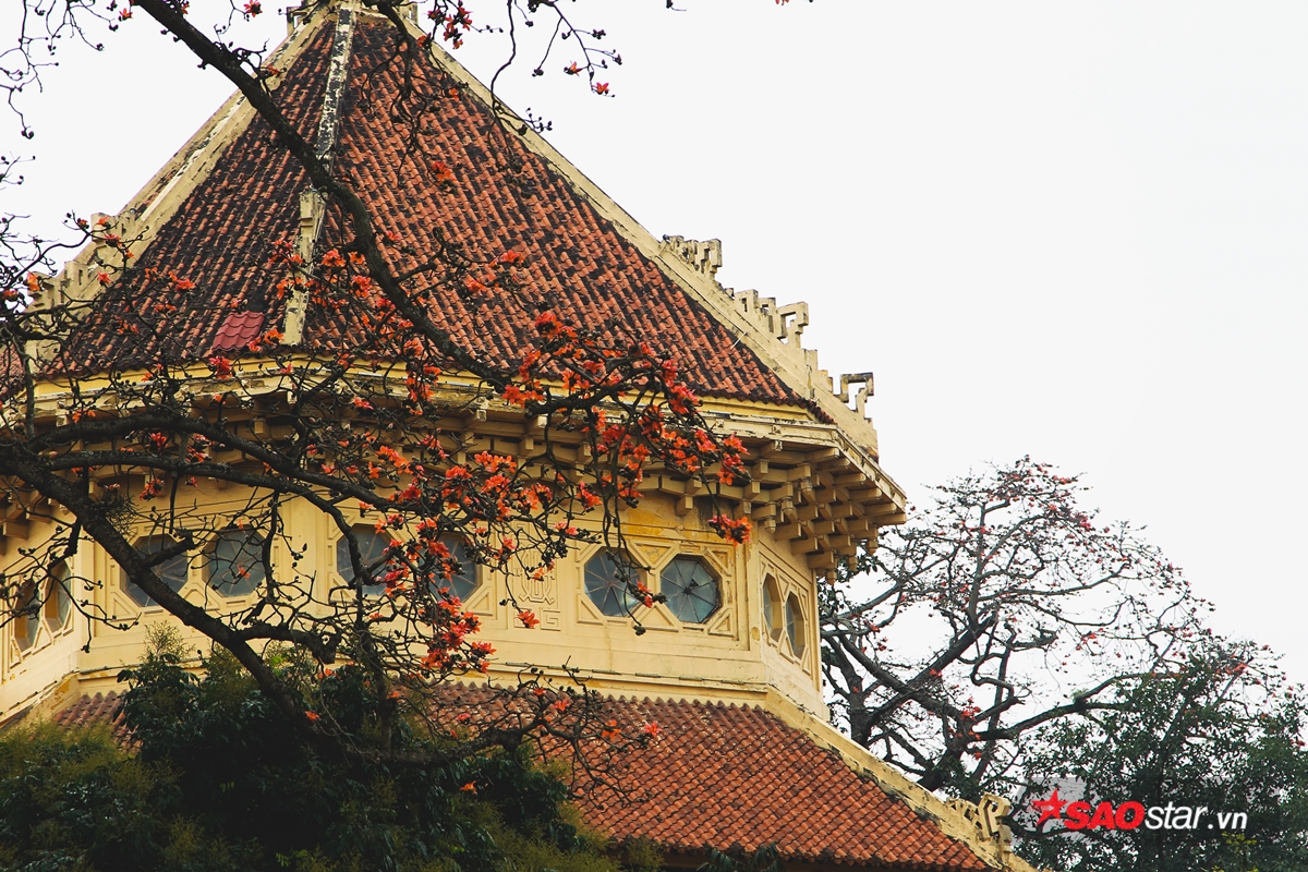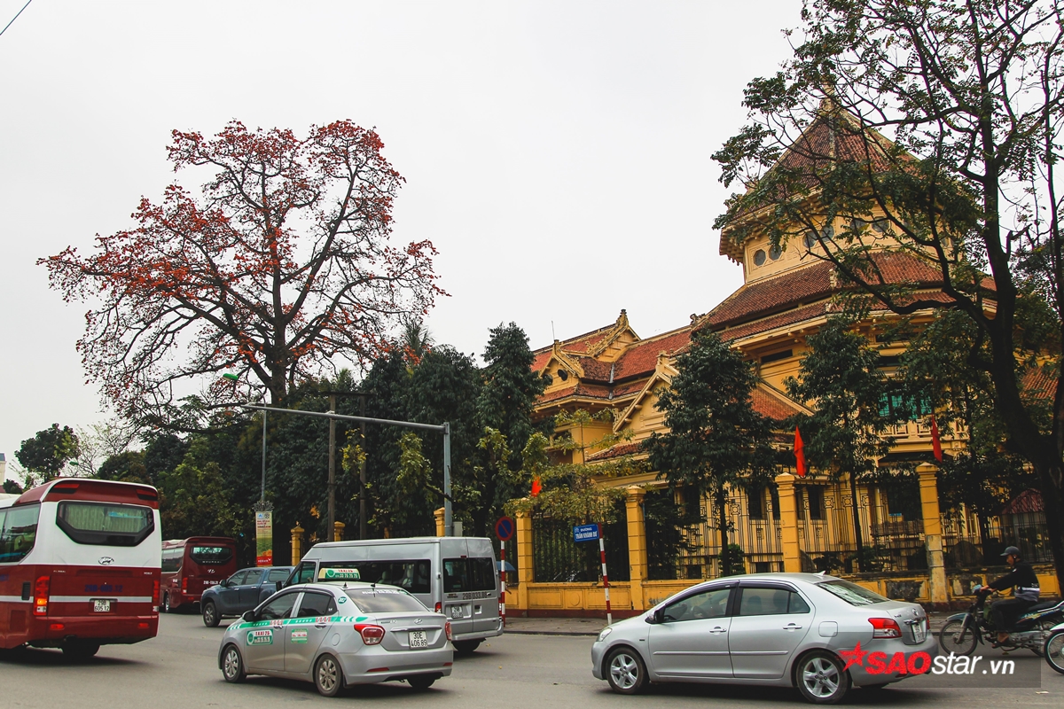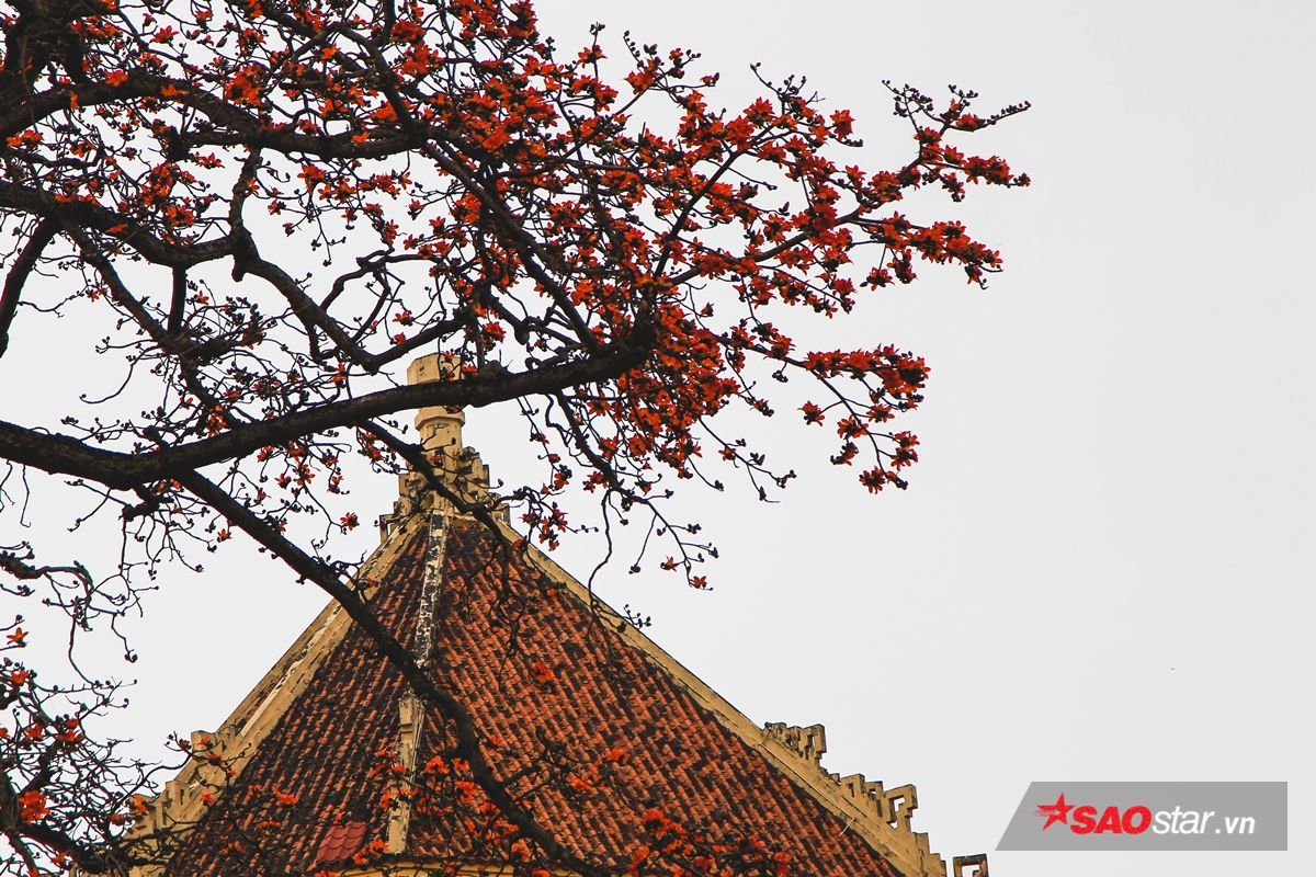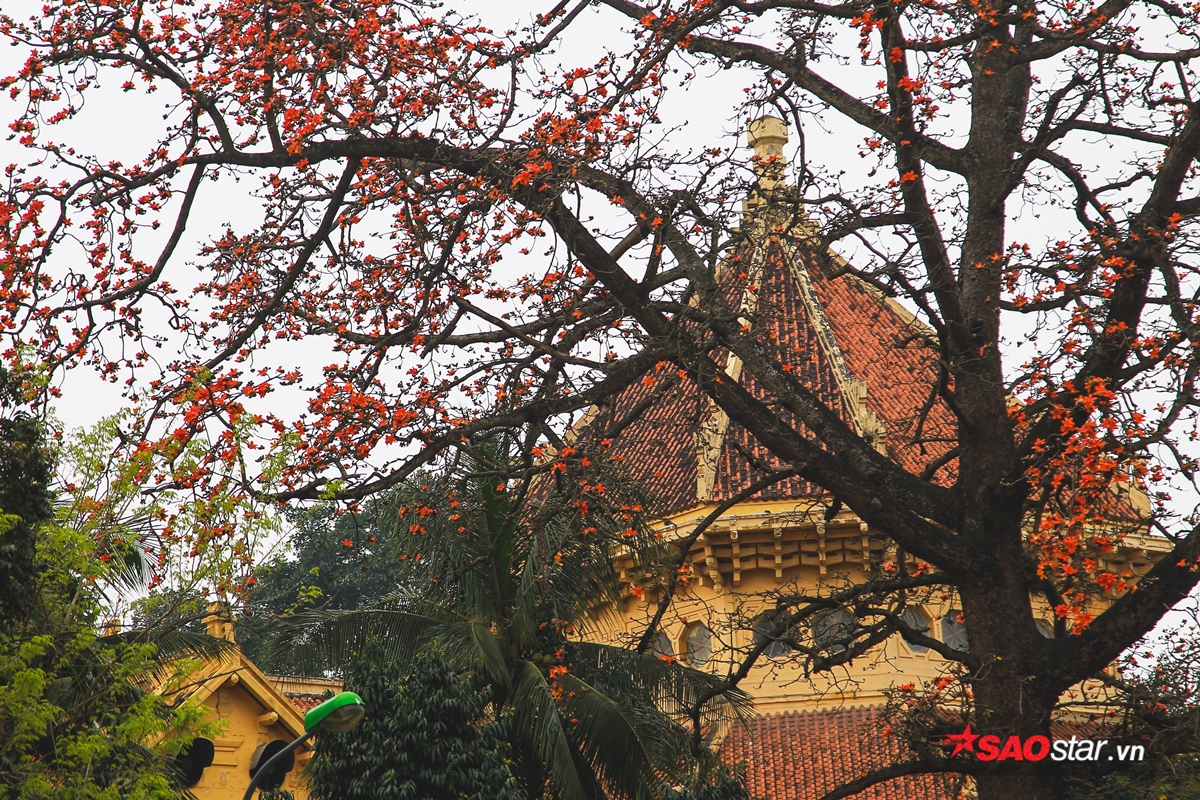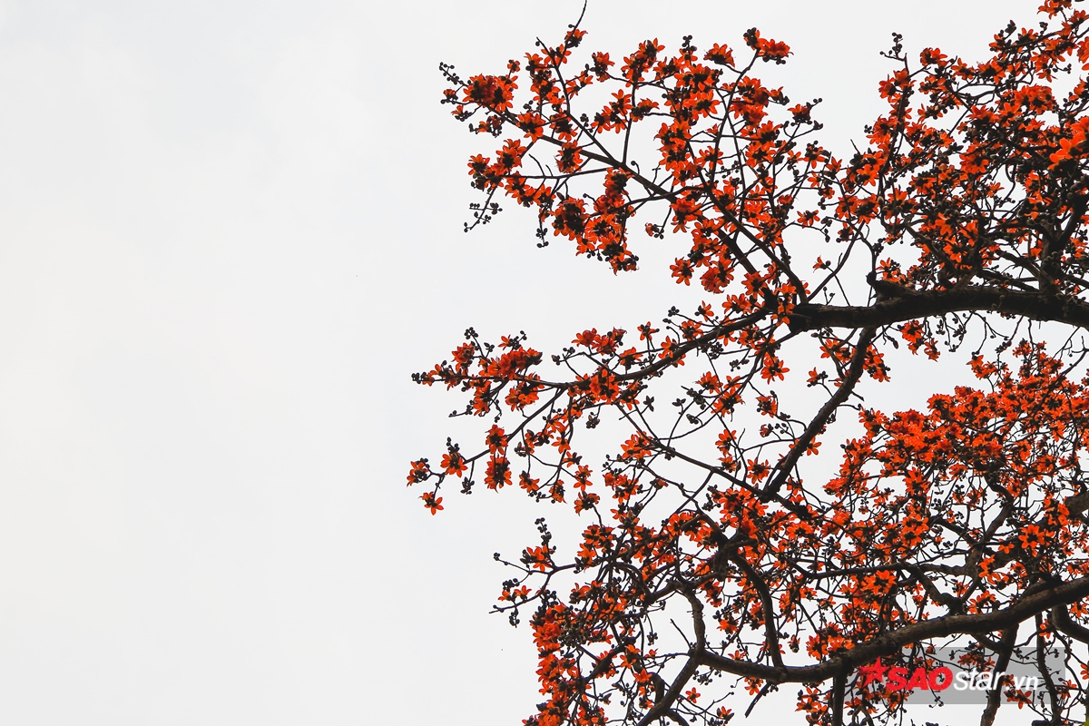 Nếu bạn cũng muốn khám phá mảng không gian như thế, có thể lui đến phố Tràng Thi. Những ngày tháng 3 này, cả tuyến đường ấy trải đầy màu đỏ của hoa gạo.