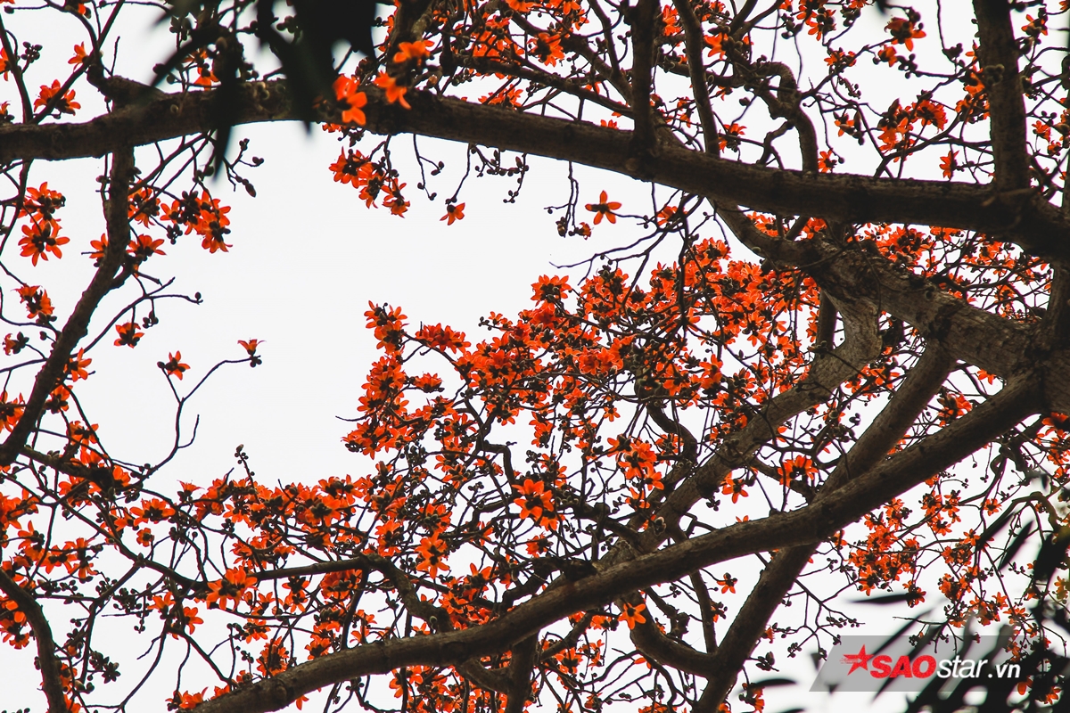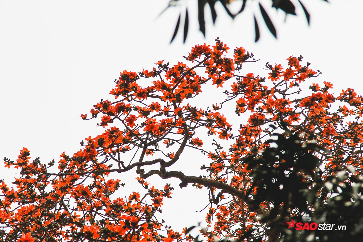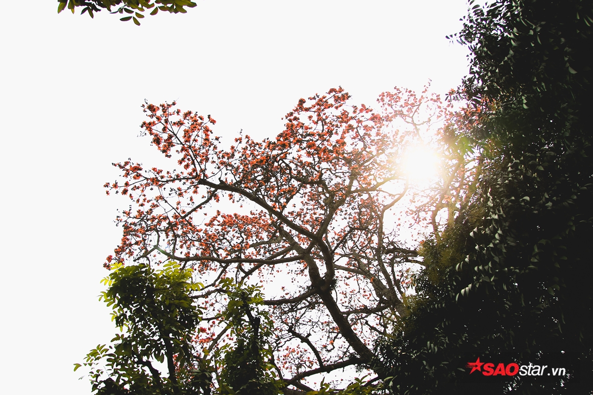 Cây gạo trong mùa ra hoa nhìn từ xa giống như được tạo thành bởi những đốm lửa nhỏ.