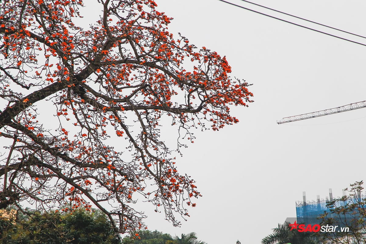 Cây gạo nở hoa rực rỡ trên phố Tràng Thi.