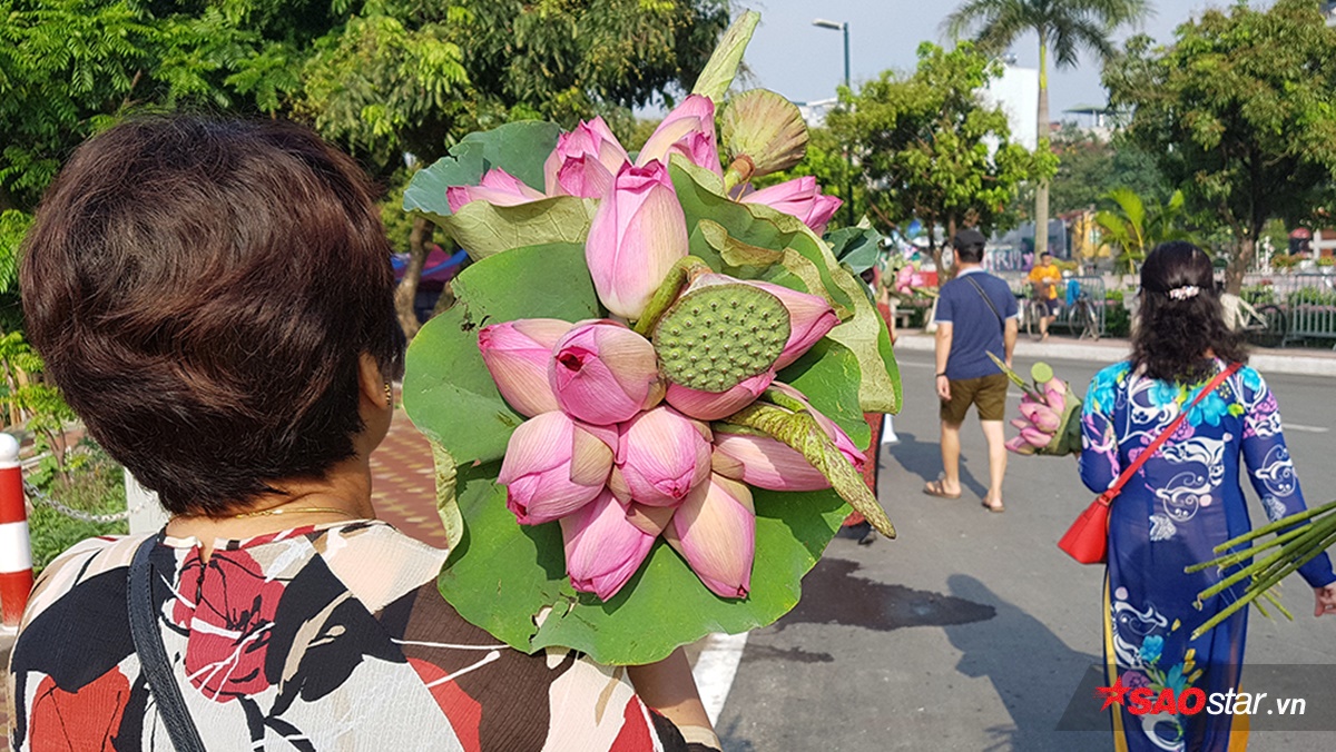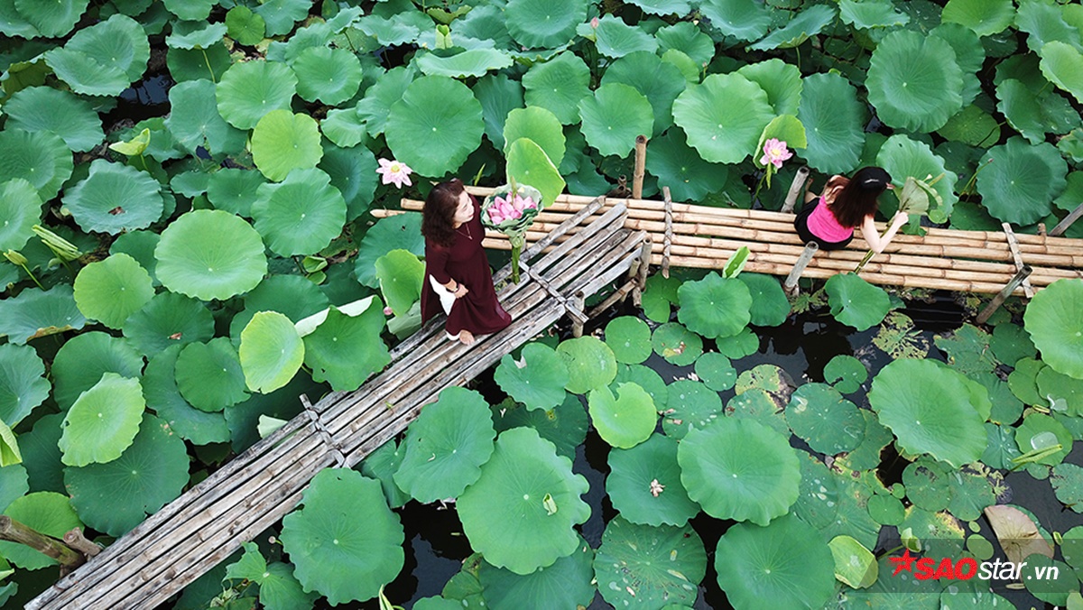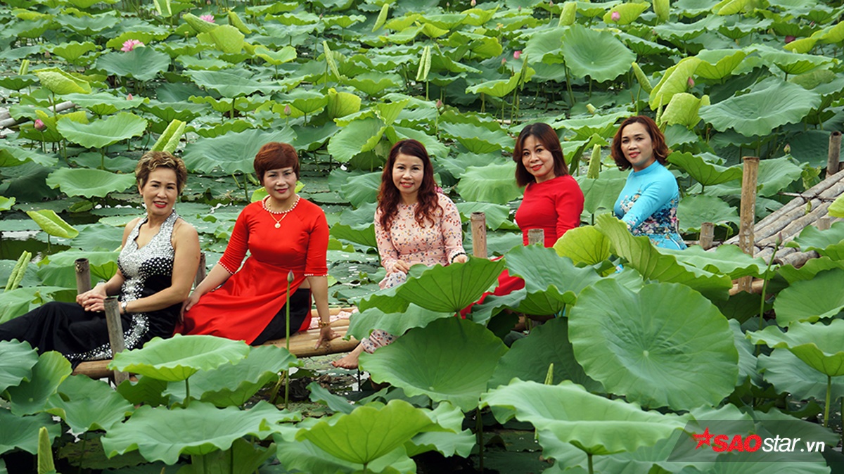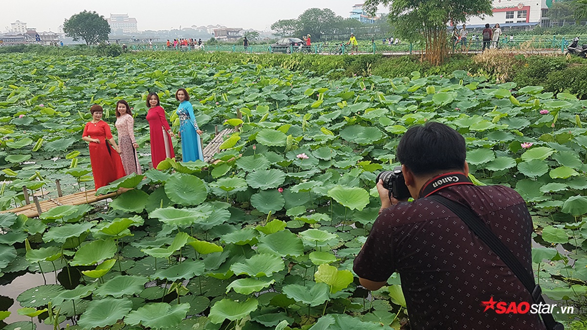 Nhiều chị em tranh thủ diện váy áo xinh đẹp đi chụp ảnh cùng hoa sen.