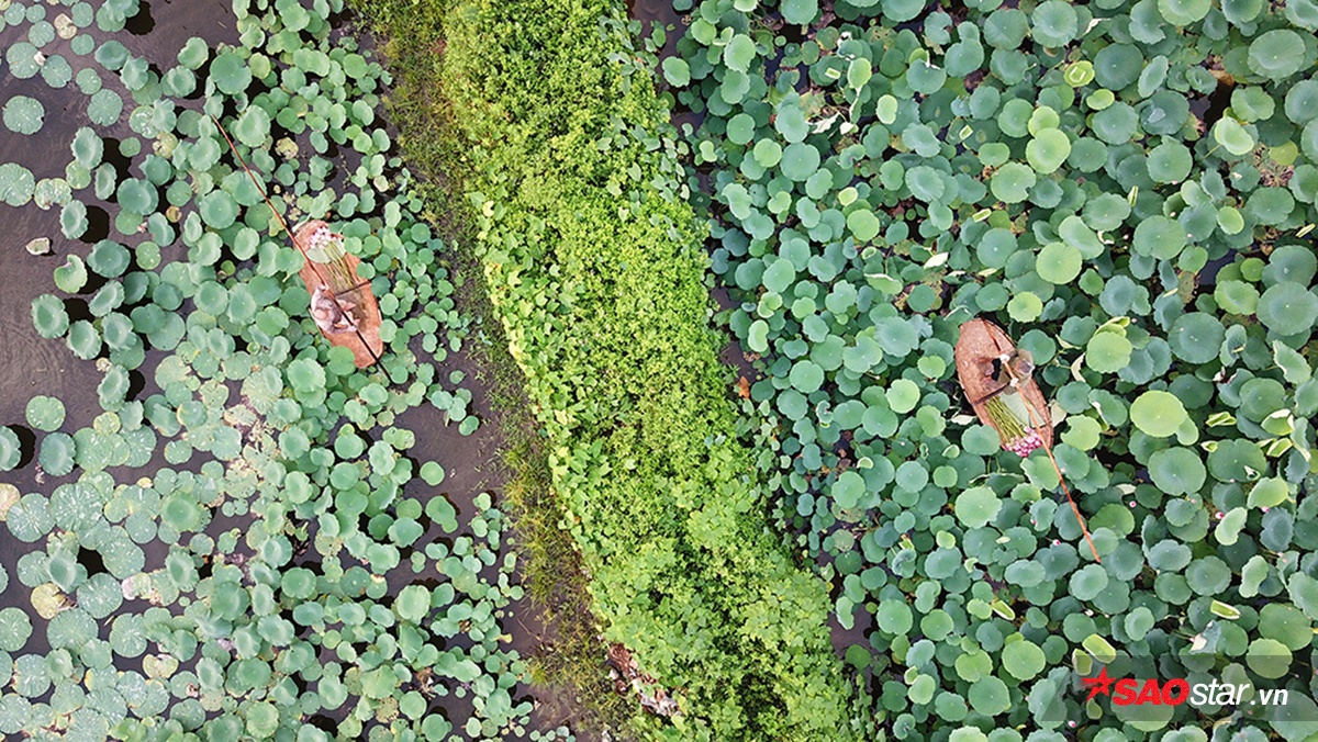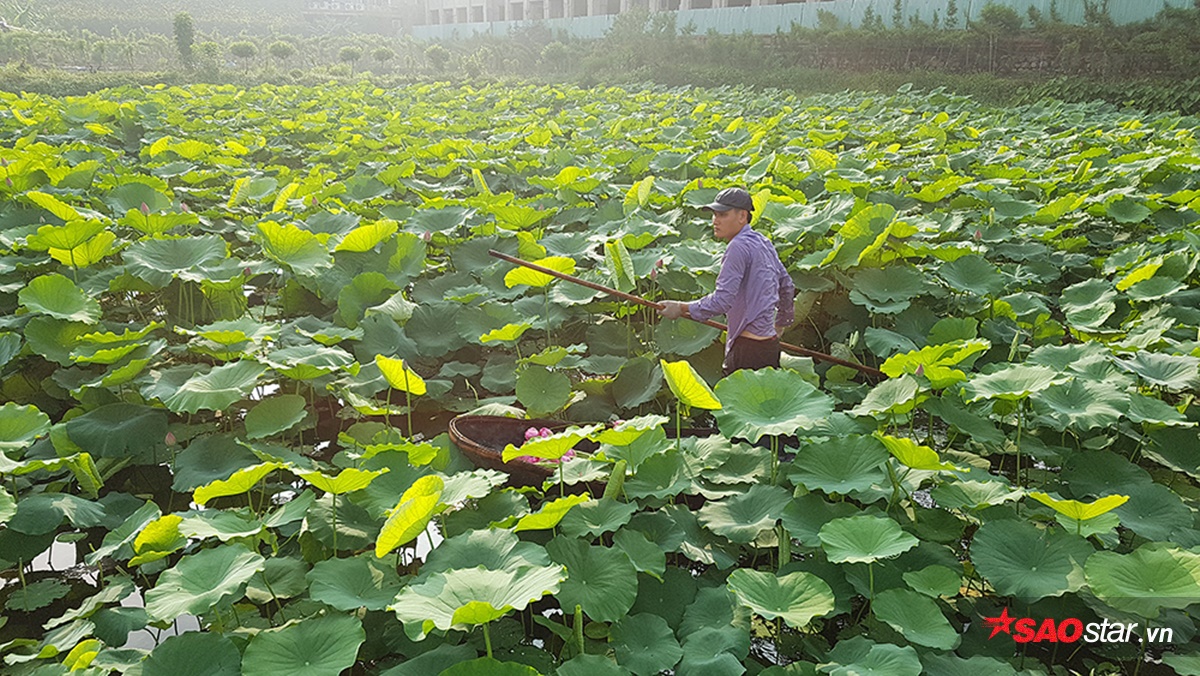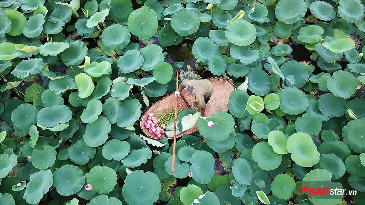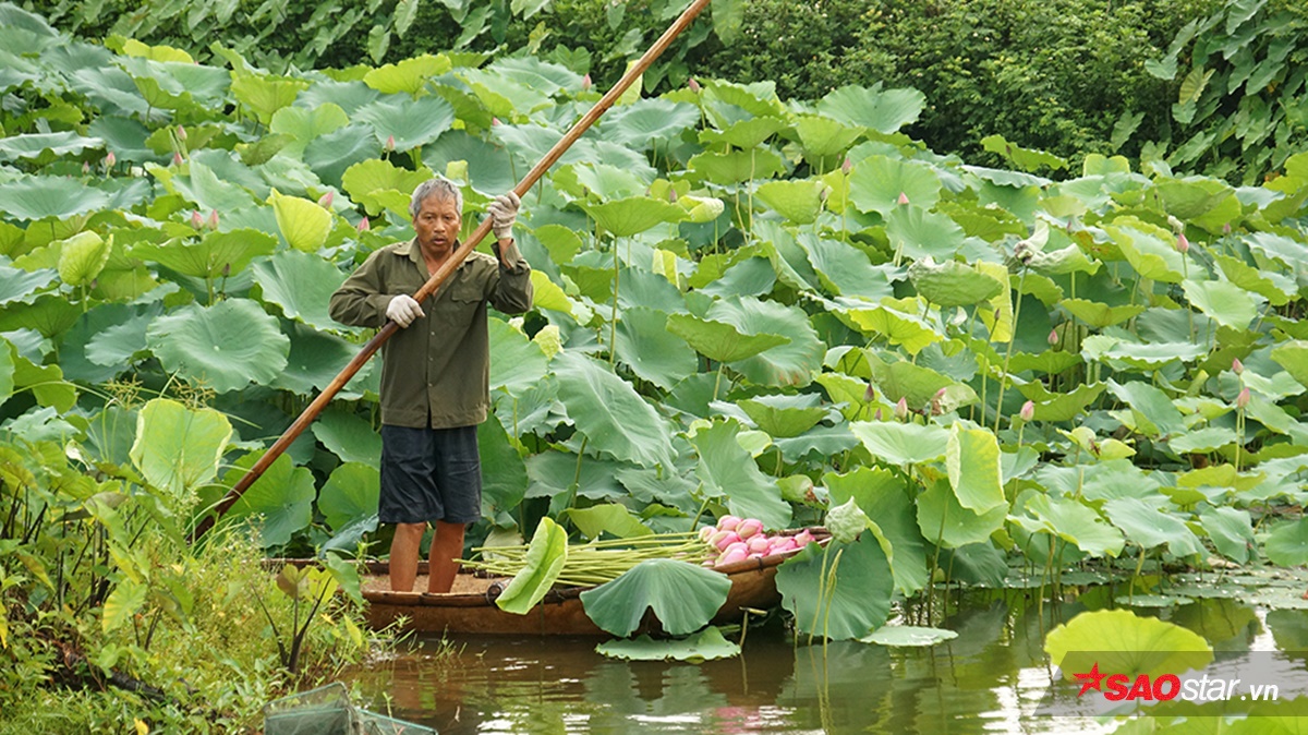 Người chủ vườn chèo thuyền đi hái sen và ướp trà.