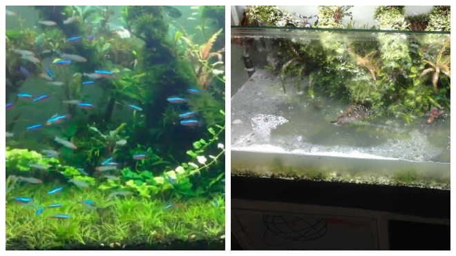 Bể cá thuỷ sinh trước khi người vợ ra tay.