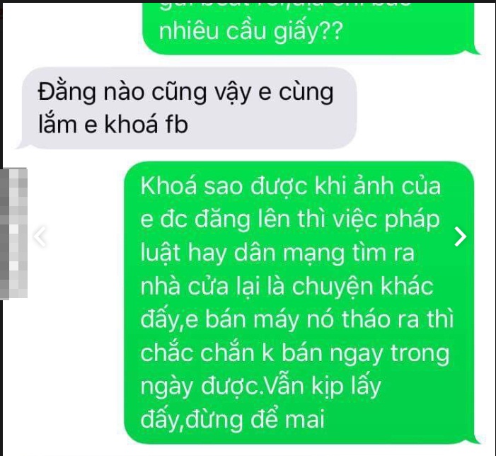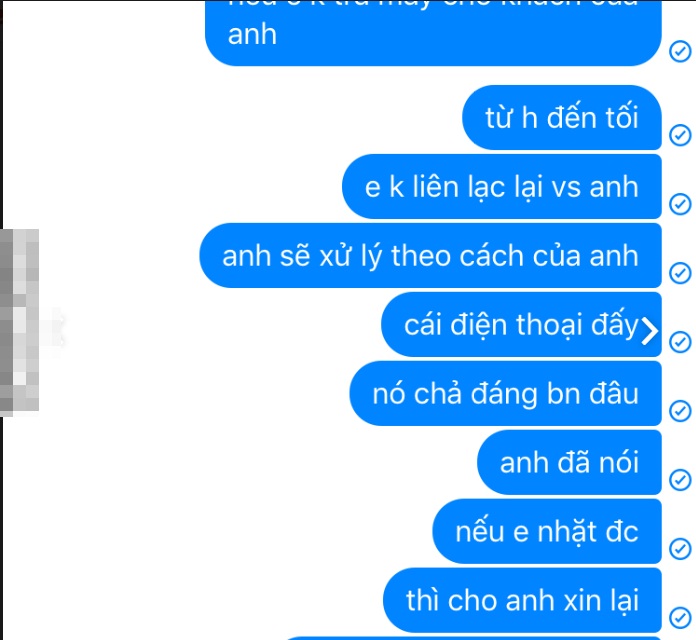 “Mình cũng đã nhắn tin, gọi điện bảo với Dũng nếu em nhặt được thì cho anh xin lại để trả cho khách! Nhưng cái mình nhận lại là Dũng không trả lời tin nhắn và block facebook sau đó chặn số điện thoại của mình.”