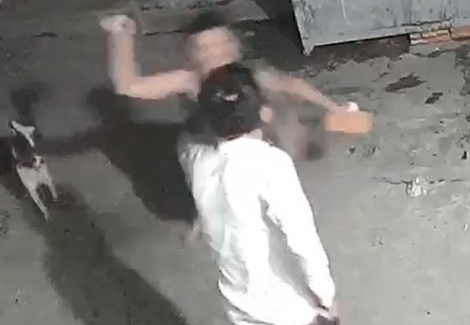 Hình ảnh xô xát giữa nghi can và nạn nhân được camera ghi lại. Ảnh: Zing
