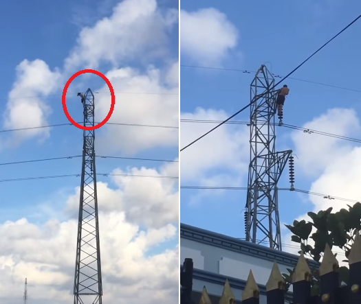 Tài khoản Hồ Hoàng Tâm cho biết, người đàn ông trên khoảng 30-35 tuổi trèo lên cột điện cao thế Bắc Nam 110 (KV) từ 3h đêm tới 7h vẫn đang cố thủ trên đó. “Người này gốc Thanh Hóa, nghi có biểu hiện ngáo đá. Công an địa phương đã khuyên xuống nhưng không được, thậm chí người này còn trèo cao hơn”, tài khoản Hồ Hoàng Tâm chia sẻ.