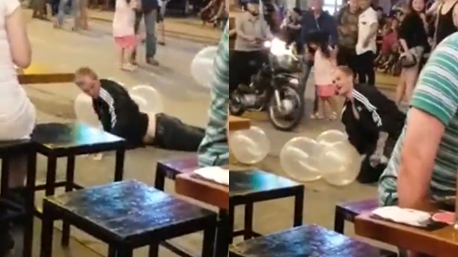 Nam thanh niên người nước ngoài trong cơn say bóng cười dường như không còn chút sức kháng cự nào.